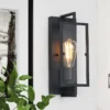 This 1-light flush mount features an open frame and a matte black finish for the right amount of modern and industrial style in your entryway or living room. It’s made from iron, and it features a rectangular back plate with sleek, curved arms for visual depth in your space. The arms hold a clear tempered glass front that softens the light from a vintage Edison bulb up to 60 W (sold separately). Plus, this flush mount has a reversible design that lets you aim ambient light up or down.